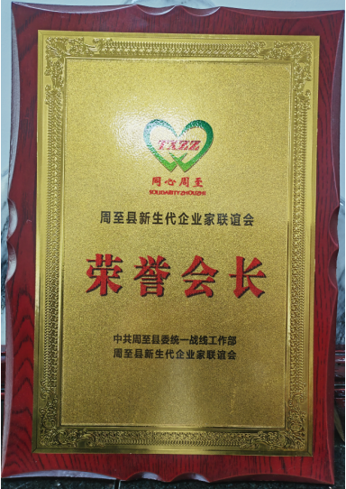 中共周至县委统战部、周至新生代企业家联谊会聘请荣印峰为荣誉会长
