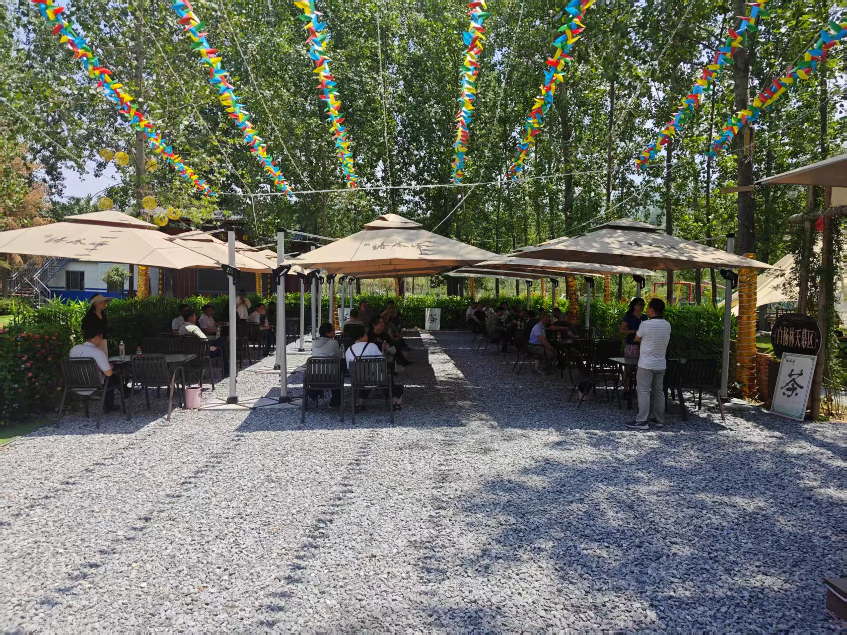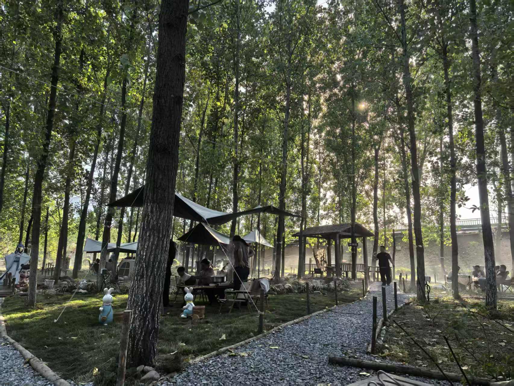 除了这些以外,我们还有很多供游客朋友消遣的娱乐项目:有供小朋友们玩耍的稻田抓螃蟹,小溪戏水。还有供大朋友打卡拍照的网红桥、景观台、最美白杨林、红色广场、西骆峪水库大坝景区,最美稻田,最美油菜花海等等,晚上还可进行啤酒烧烤、露天唱歌、篝火晚会等娱乐活动。基地有帐篷营位80个,营地均配备有夏季降温的地、空雾森系统。露营装备齐全,配套器具完善,水电气齐全。自搭建营位15000余平方米。有免费生态停车区可停放车辆120辆。